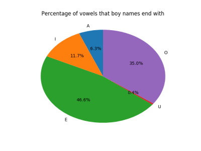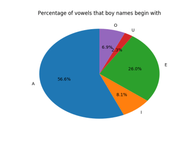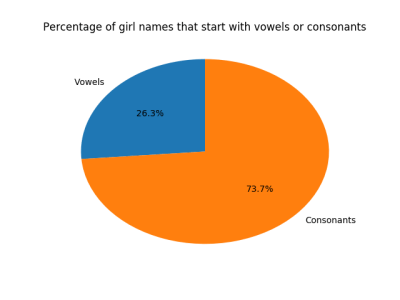Because of the difference in vowel consonants between the genders, I next decided to check which specific vowels names most frequently begin with.