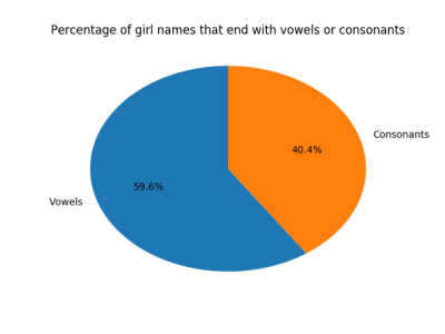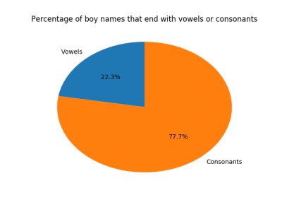 I spent somewhat of a week on and off writing this. I asked more than a few people what ideas they had for looking at the names and these were the ones we came up with. It’s not like there aren’t others! Things like whether popular names from the past are making a comeback. Do the lengths change over time? Do the percentages of names that start and end with vowels change over time?