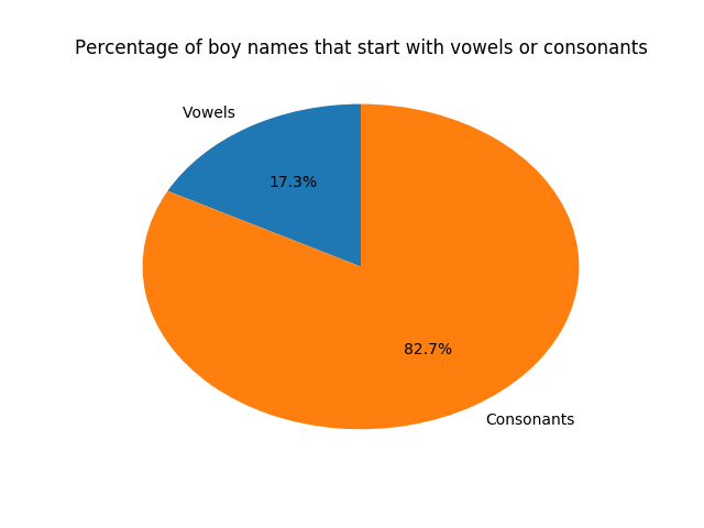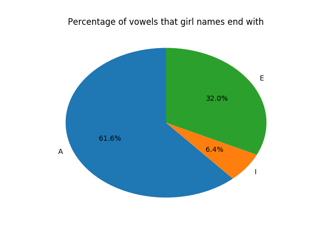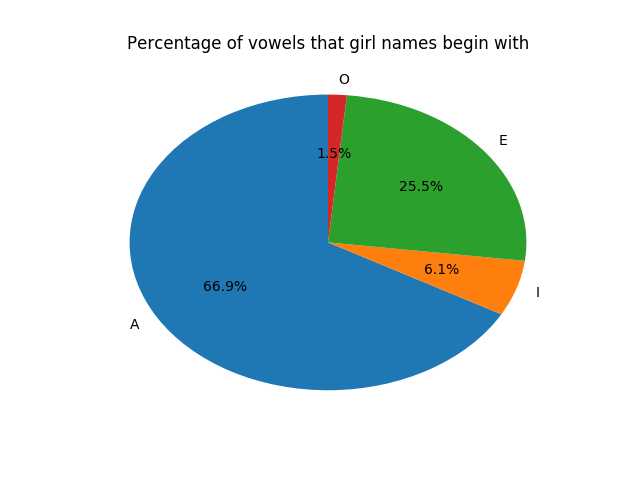 Because of the difference in vowel consonants between the genders, I next decided to check which specific vowels names most frequently begin with.